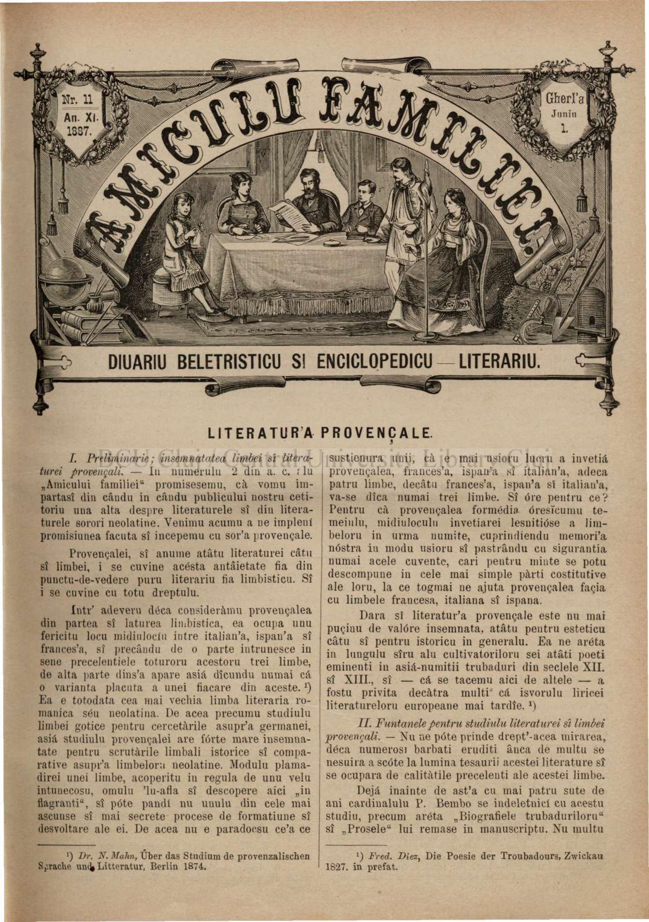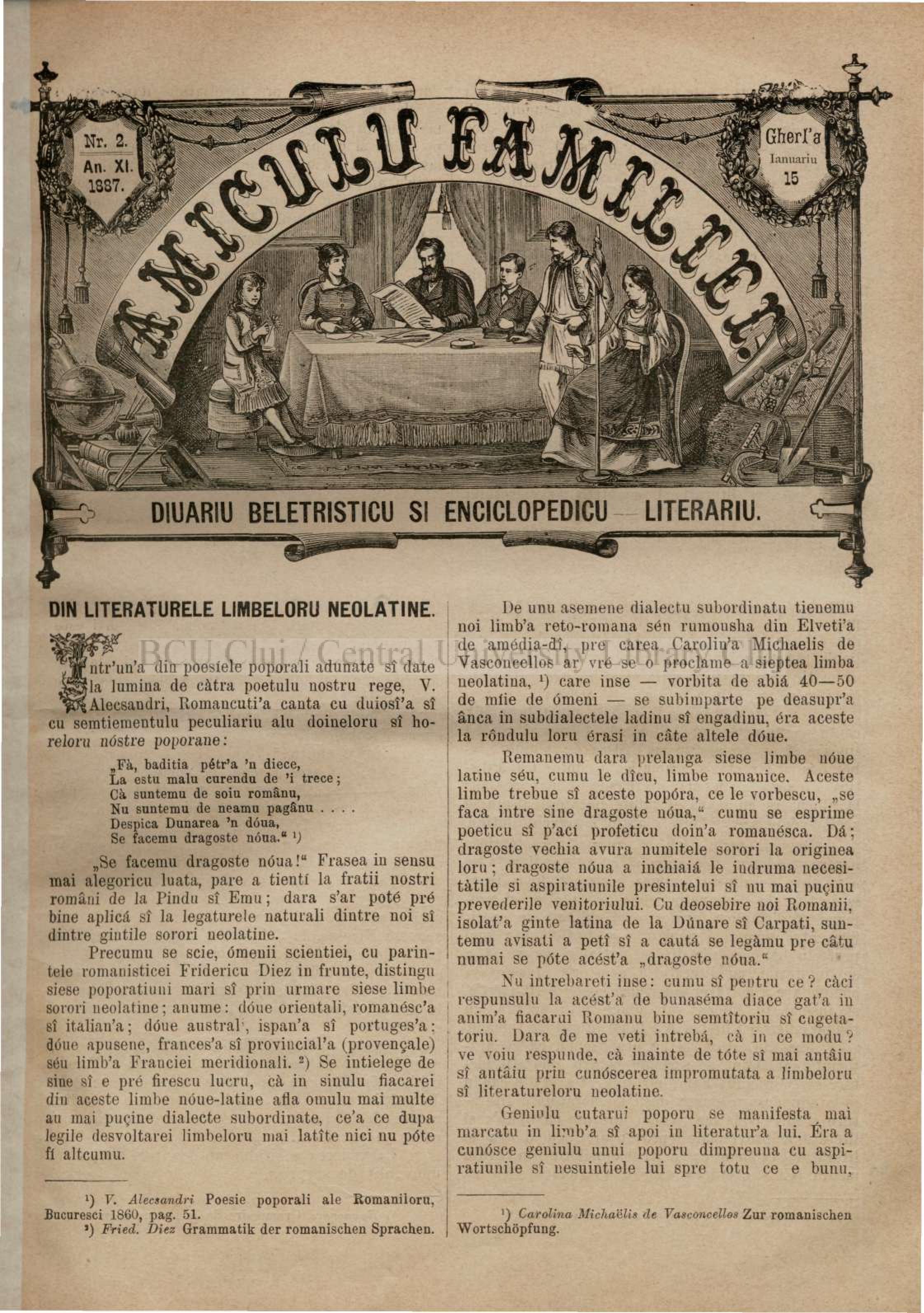 Grigore Silași, „Din literaturile limbilor neolatine”, Amicul Familiei. Ziar beletristic și enciclopedic-literar, an XI, nr. 2, 1887
